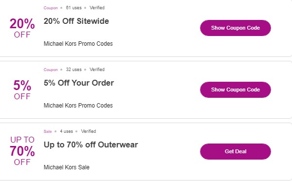 Michael Kors has coupons in various places online and offline, such as newspapers and magazines, available at supermarkets or malls near you. You can also look for discounts online, where deals are available for various fashion brands, including Michael Kors. These discounts will make your purchases more affordable than usual so take advantage of them whenever possible!