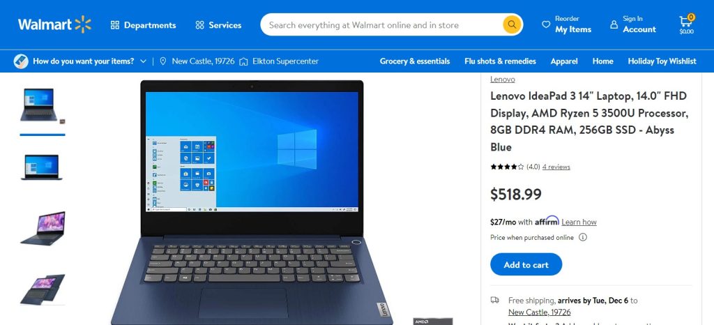 The Lenovo 14-inch IdeaPad 3 is available from Walmart for USD 450 (about £350).