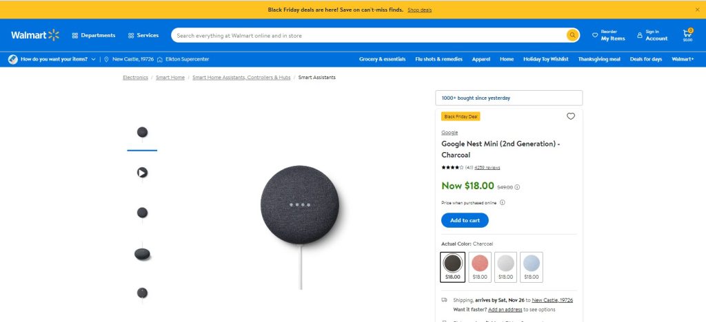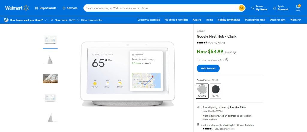 You can pre-order Google Home Hub on Walmart’s website starting at 3 p.m. ET on Thanksgiving Day (Nov. 22), or buy one in stores when they open at 6 p.m if supplies last until then. If you have Walmart’s free shipping option and preorder by Nov 21st, it will arrive by Dec 5th.
